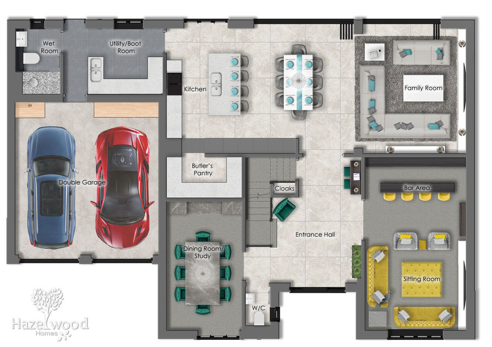 The Houses are detached, built on two floors, with five bedrooms, five bathrooms and a double garage.